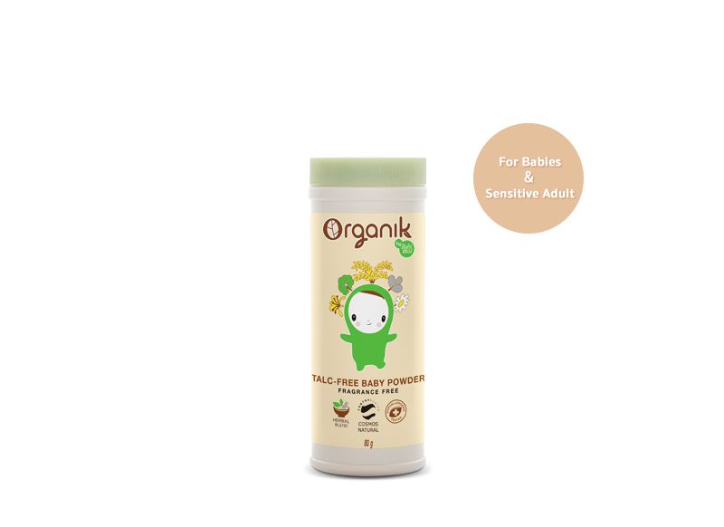 สูตรออร์แกนิค ที่ได้รับการรับรองมาตรฐานระดับโลก COSMOS ORGANIC ด้วยแป้งข้าวโพดออร์แกนิค 100% ช่วยปกป้องผิวจากความเปียกชื้นและผดผื่น ให้ผิวลูกน้อยเนียนนุ่มและแห้งสบาย
