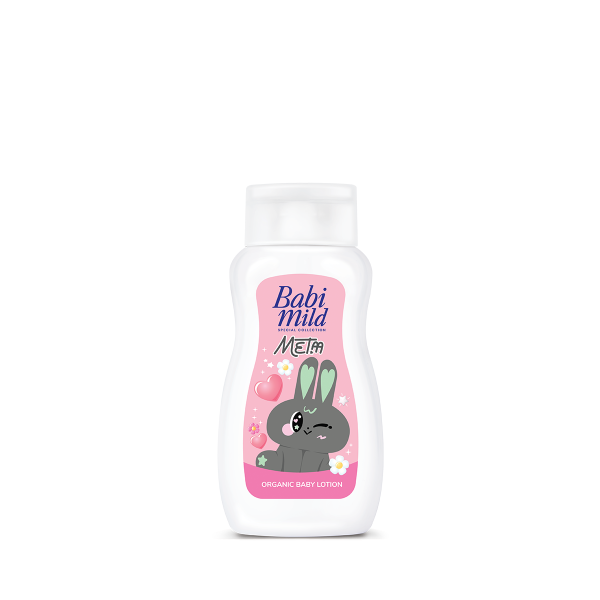 ผลิตภัณฑ์โลชั่นบำรุงผิว เบบี้มายด์ X เมต้า น้องกระต่ายตัวน้อยขนสีเทา ที่มีใบหูสีเขียวสุดเท่ เมต้า พร้อมแล้วที่จะมาส่งความรัก ด้วยตาวิ้งค์ พร้อมกับกลิ่นหอมเบบี้ น่ารัก อ่อนโยนให้กับผิวทุกวัน